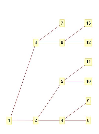 一个数据为[1,2,3,4,5,6,7,8,9,10,11,12,13]的树长这样